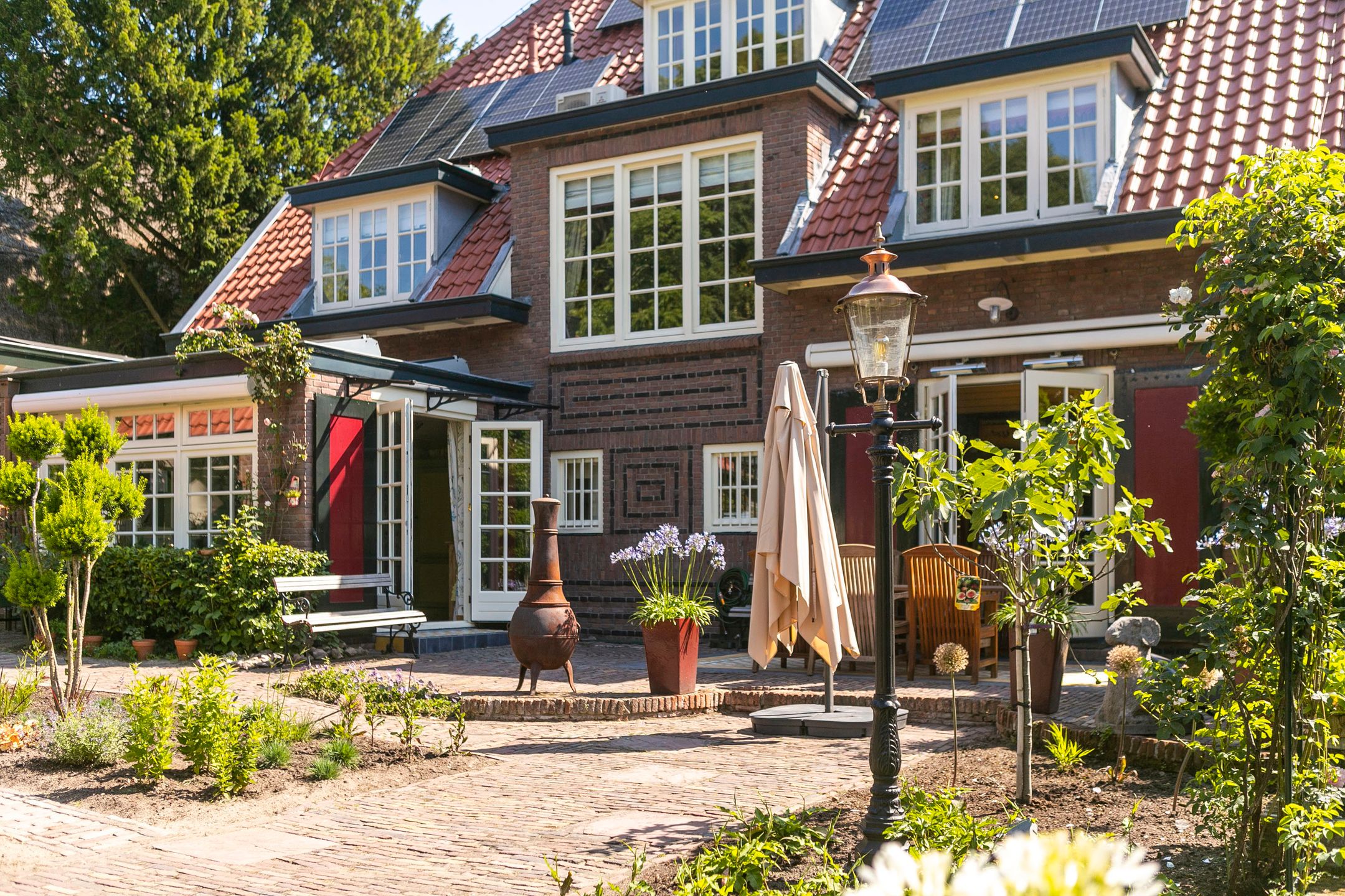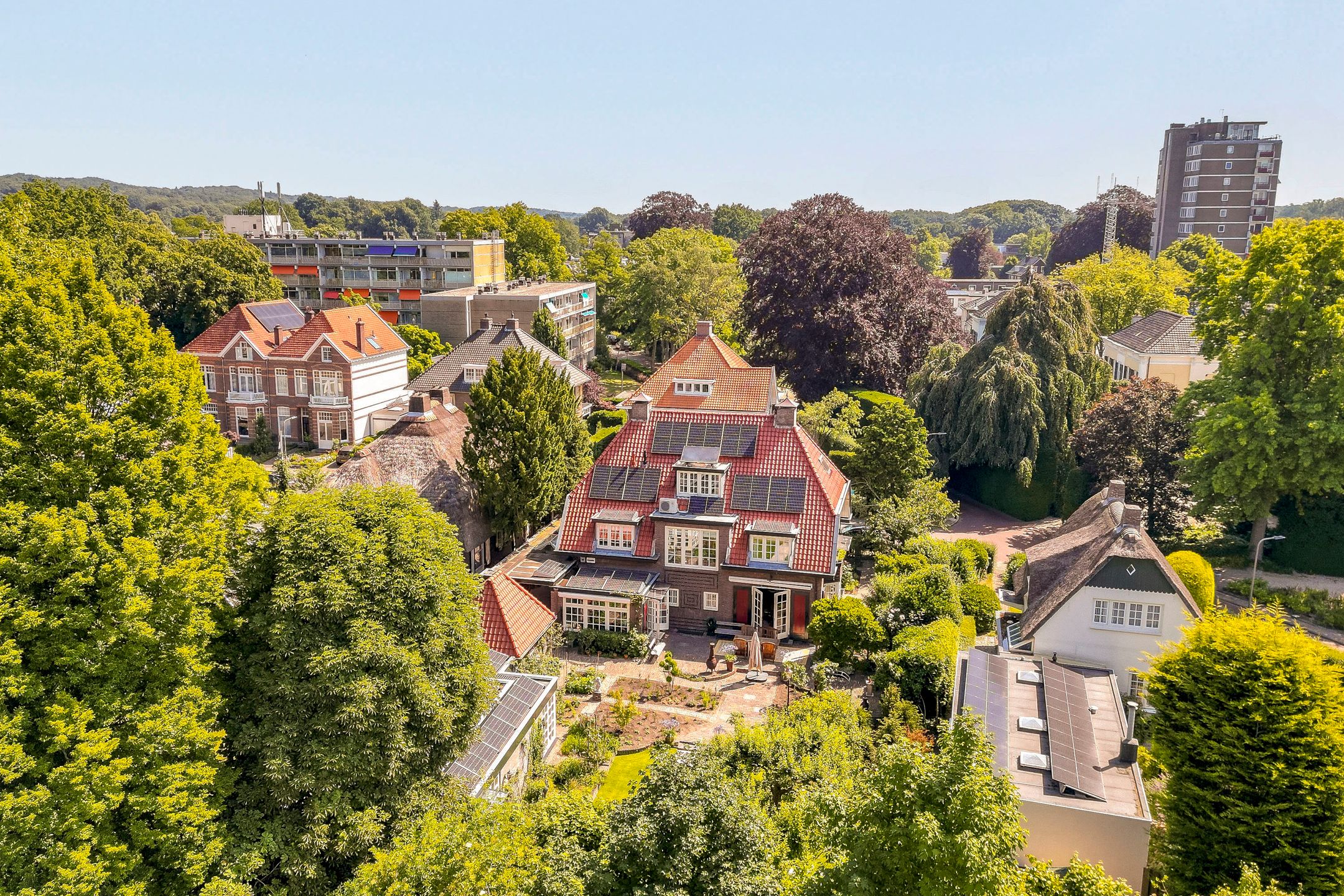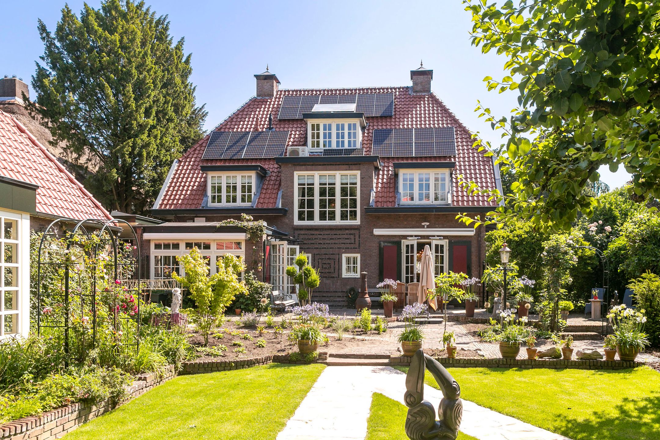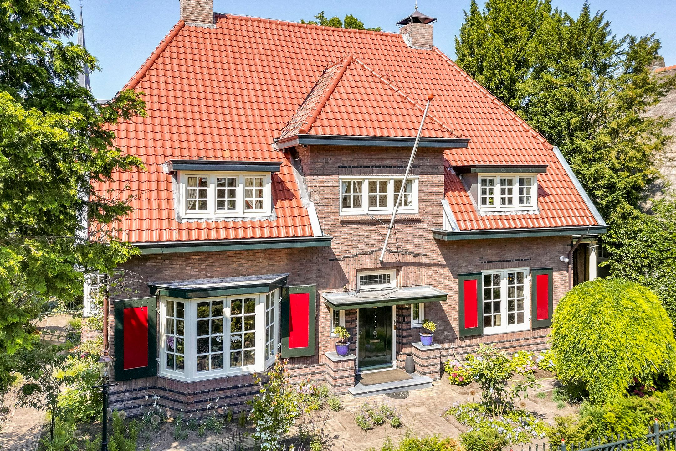 Op loopafstand van NS-station Velp gelegen! Amsterdam-Zuid is vanuit Velp in ruim een uur bereikbaar met de trein. Ideale woning wanneer u in het westen van het land of in de omgeving Nijmegen of Utrecht blijft werken. Op circa 2 km afstand bereikt u de A12 richting Utrecht Duitsland. Diverse internationale vliegvelden binnen 110 km afstand gelegen.. U kunt hier schitterend wonen. Onder architectuur gebouwd in romantische stijl gerenoveerd en uitstekend onderhouden royale vrijstaande villa uit 1926. Met in 2005 gebouwd vrijstaand fraai in dezelfde sfeer uitgevoerd bouwwerk waarvan in ondergebracht een verwarmd zwembad, toilet met fontein, sauna, openslaande deuren naar de schitterend aangelegde achtertuin op het zuidwesten met diverse terrassen, grenzend aan voormalige garage, waarin nu garderobe, elektrische zonneboiler, tuingereedschap, fietsenberging met zolder aanwezig zijn. Dit vrijstaand bouwwerk kan gemakkelijk omgevormd worden tot praktijk aan huis, kantoor, atelier of semi zelfstandige woon- slaapunit voor familielid van 75 m2 (binnenmaat) exclusief alle bergingsruimten van ongeveer 12,5m2 (binnenmaat) plus vliering van 18m2 (binnenmaat). Er zijn 2 buitenkranen, 2 buitenstopcontacten en een elektrische terrasverwarming aanwezig. Het platte dak deel is voorzien van zonnecollectoren. De twee zonneschermen zijn elektrisch bedienbaar. Zeer gunstig gelegen ten opzichte van centrum met diverse winkels en restaurants, 5 minuten lopen naar NS-station, 3 minuten naar de basisschool en slechts 5 minuten fietsen naar het Rhedens Lyceum en het Titus college VMBO. Andere middelbare scholen in Arnhem zijn met de fiets binnen 20 minuten bereikbaar. Zwem, tennis, voetbal en hockeyclubs liggen binnen 10 minuten fietsen van deze woning. Gelegen in een rustige straat. Indeling Begane grond: vestibule, royale hal, garderobe, toilet met fontein, voorkamer met erker en open haard en openslaande deuren naar de zij tuin, eetkamer met erker en openslaande deuren naar de tuin, zeer ruime studeerkamertvkamer, in 1996 uitgebouwde volledig ingerichte woonkeuken en bijkeuken. Zijuitgang naargarage carport. 1e verdieping: overloop, 4 slaapkamers voorzien van airco en waarvan 1 met balkon, 1e badkamer met douche, toilet en wastafel, 2e badkamer aansluitend aan een slaapkamer met douche, ligbad, 2 wastafels, toilet en aansluiting voor wasmachine en droger. 2e verdieping: royale leefruimte met veel bergruimte, aansluiting voor wasmachine en droger, logeerkamer, 3e badkamer met douche, toilet en wastafel. Bijzonderheden: - Volledig voorzien van dubbel glas - Karakteristieke elementen zijn bewaard gebleven - Mooie parketvloeren, stijlvolle tegelvloeren zowel binnen als buiten, balken, plafonds en paneeldeuren - Bijzonder mooie Engelse bloementuin met beregeningsinstallatie, terras en verwarming - Haardhok voor houtopslag - Geheel overdekt en verwarmd zwembad met kleedkamer, sauna, douche en toilet - Berging voor opslag tuingereedschap met werkbank - 2e berging voor fietsen - KIWA gecertificeerde zand gevulde olietank - In 2021 voor meer dan 750.000,- k.k. gerenoveerd - Teruggebracht naar de stijl van de jaren 20 en' 30 van de vorige eeuw - 150 bakelieten, lichtschakelaars en wcds (sommige met UTP) geplaatst - Gietijzeren radiatoren klassiek met Rococo motief, totaal circa 20 kw vermogen - Erkers met convecterende warmte elementen en radiatoromkleding in hout, met bespoke webbing met fleur-de-lis en Spirit of Ecstacy motief. Vensterbanken voorzien van natuursteen, waaronder azul de bahia, verde de guatamala, patagonia, rosso de Valencia,avocado en ros airora. Totaal circa 20 kw vermogen - Nieuw leidingwerk op veel plaatsen - Nieuw zinkwerk daken, goten en dakkapellen - Plafond isolatie, vloer en spouwmuurisolatie - Dakkapellen gesoleerd - 3 ketels boilers - Nieuw dakleer en isolatieschuim op platte daken, keuken en spuwers - Dakpannen gereinigd en gecoat - Koperen schoorsteenkappen met vergulde globus - Zeer stille Mitsubishi airconditioning circa 15 kw, 50.000 BTU - 12 meter lange carport in hout met Belgisch hardstenen voeten, 2 daklichten en inbouwspots. - Circa 40 zonnepanelen met hoogrendement (b.j. 2021, 475 ws) circa 70 kwu totaal p.d. Omvormers: solar edge metmicro optimisers en gropatt. - 5 Zonneboilers - Inpandig zwembad met nieuwste ultra violet filtertechniek, jetstream en sauna - Beregeningsinstallatie in voor- en achtertuin, rondom het huis. Door uw hovenier, uzelf of secondant desgewenst per smartphone te bedienen of te koppelen aan de weersverwachting. - Tuin paviljoen in Bentheimer stijl met harmonica deuren op hard houten plateau en betonnen fundering. - Nieuwe tuininrichting en beplanting deels nieuwe bestrating met oude ijssel handvormklinkers, rode Weserbergrland schiefferplaten en lichtend pad in andes rose Braziliaanse kwartsiet. - Buitenverlichting Aldo Bernardi al Sole en Baretton in messingkoper en Oud Hollandse stijl. - Automatische elektrische toegangspoort met handzenders. - Hand gesmede tuintoegangshekwerken (klaassen) met bloemdecoratie. - 2 openhaarden met natuurstenen mantel nerogold en eikenhout. - Handgemaakte (House of Windsor) massief houten keuken (berken en beuken), hand gestreken met fijn harige kwast, brede gauge. Aanrechtblad in exotische zeldzame kwartsiet daedalos. - Klassieke Engelse gootsteen in Fire Clay (hoge dichtheid, non-chipping). - Quooker Fusion messing kraan met kokend water en gekoeld, bruisend water. - Klassiek 6-pits gasfornuis met oven Heartland. - Diverse moderne inbouwapparatuur waaronder Miele Auto-dos vaatwasser, Miele Steamer combi-magnetron en wijnkoelkast Liebherr. - Schilderwerken in Farrow & Ball kleursysteem. - Skirting o.a. Victoria Green, Eggs & Darts. - Toilet begane grond met belle epoque tegelwerk gedeeltelijk handgeschilderd. - Plafonds geschikt voor kroonluchters. - Klassieke gordijnen o.a. van Etro, Morris met fringe Villandry en luxe embrasses houles. - Luxe klassieke behangsoorten waaronder: Morris Compendium, Thibaut Giselle, Cole & Son