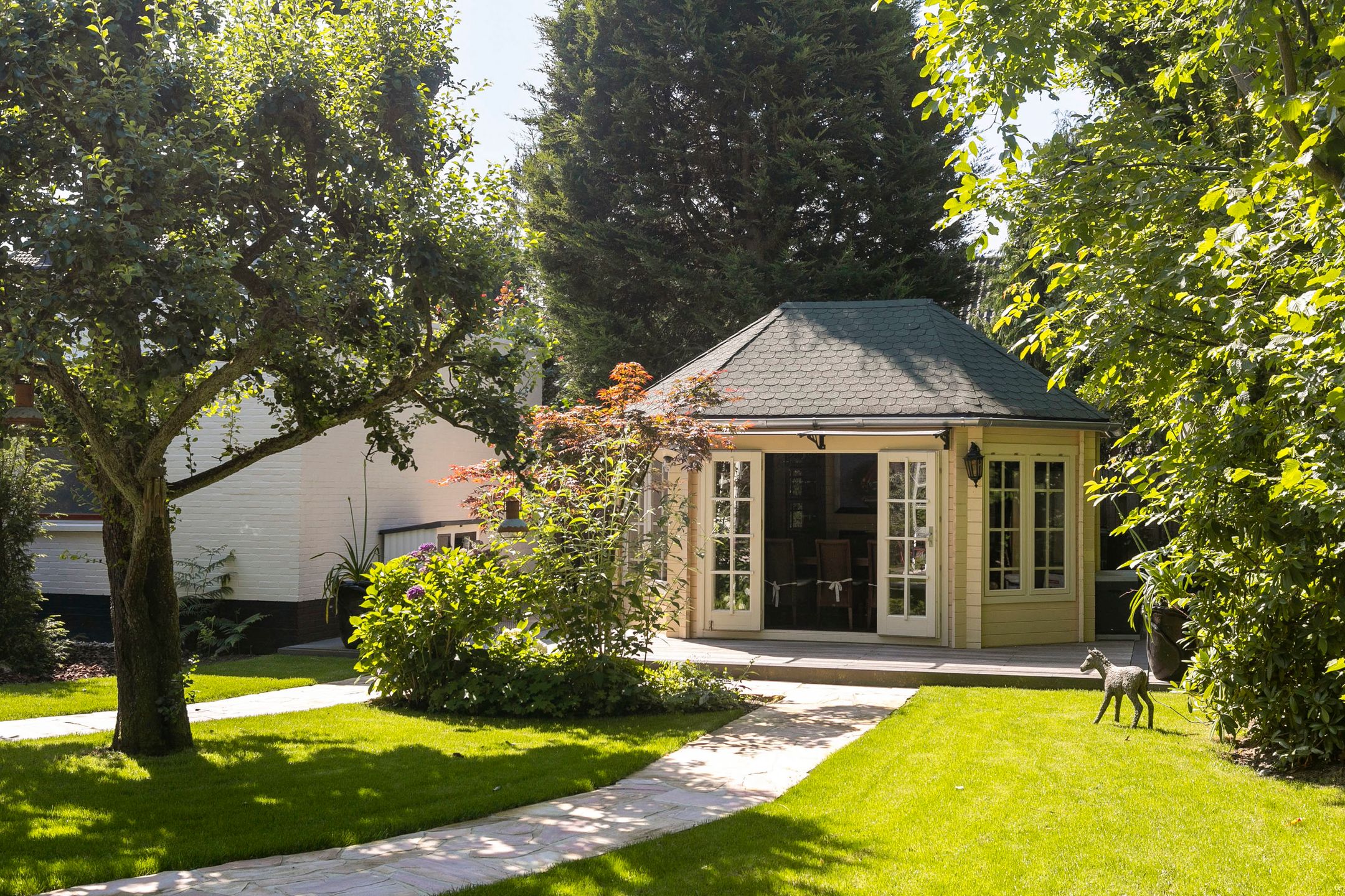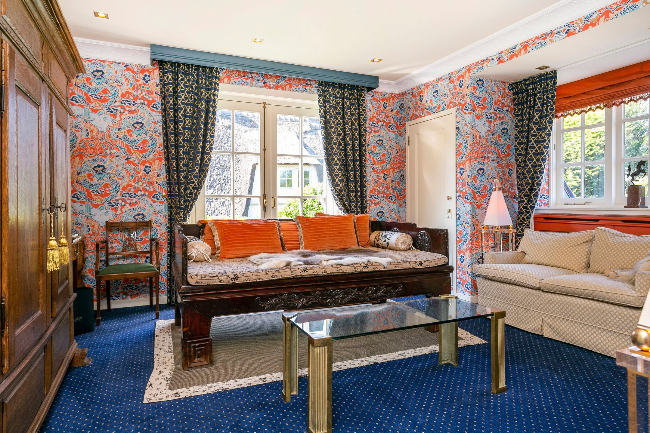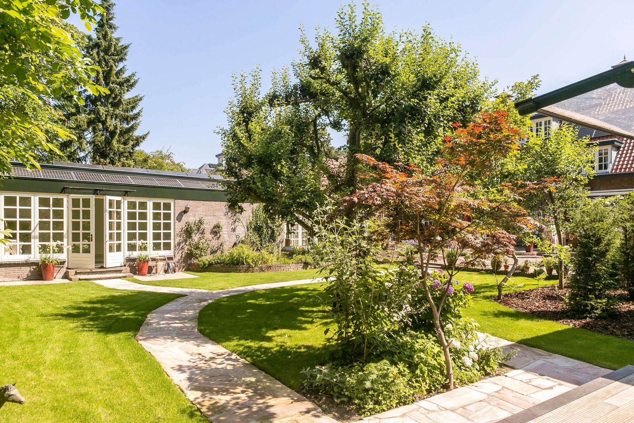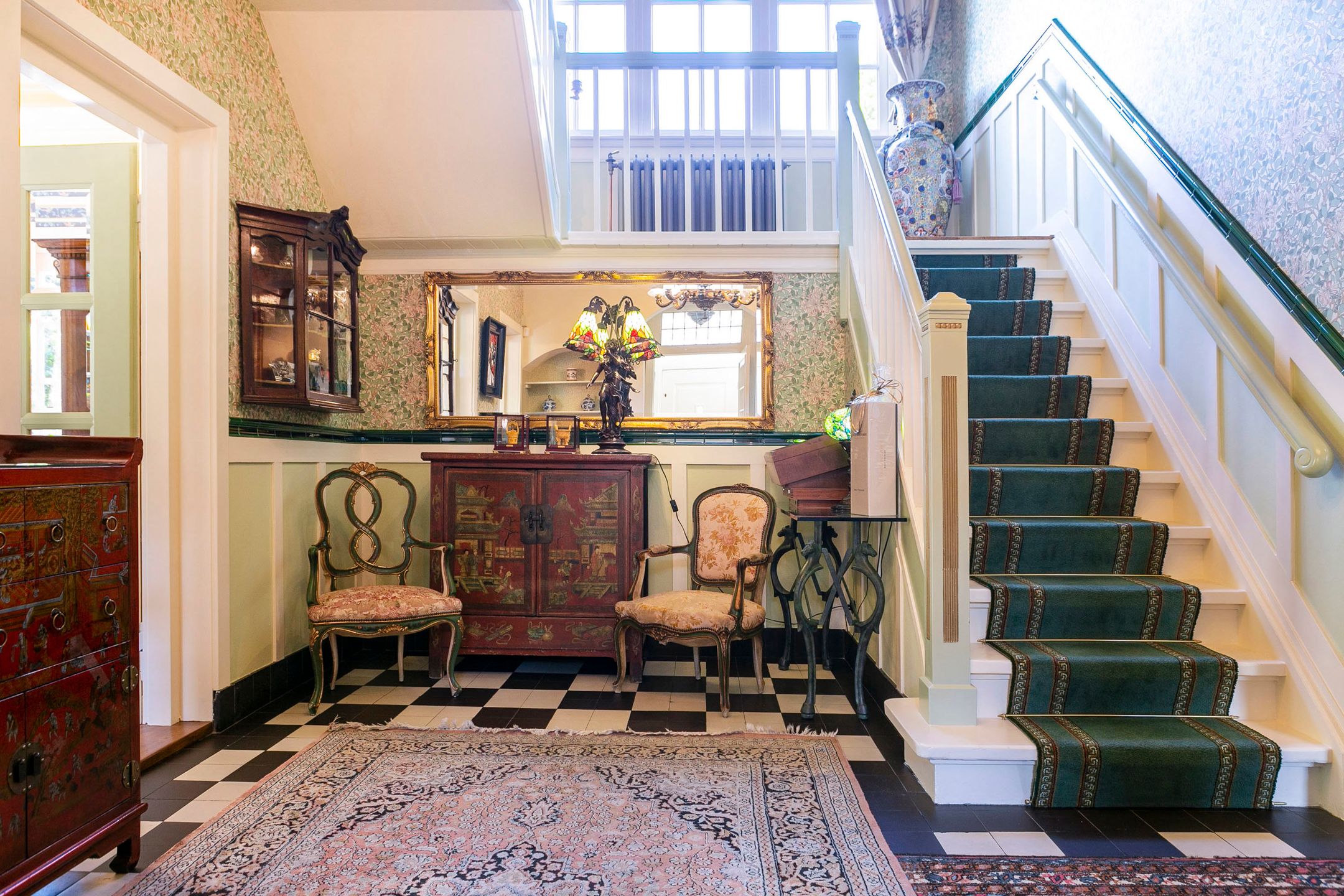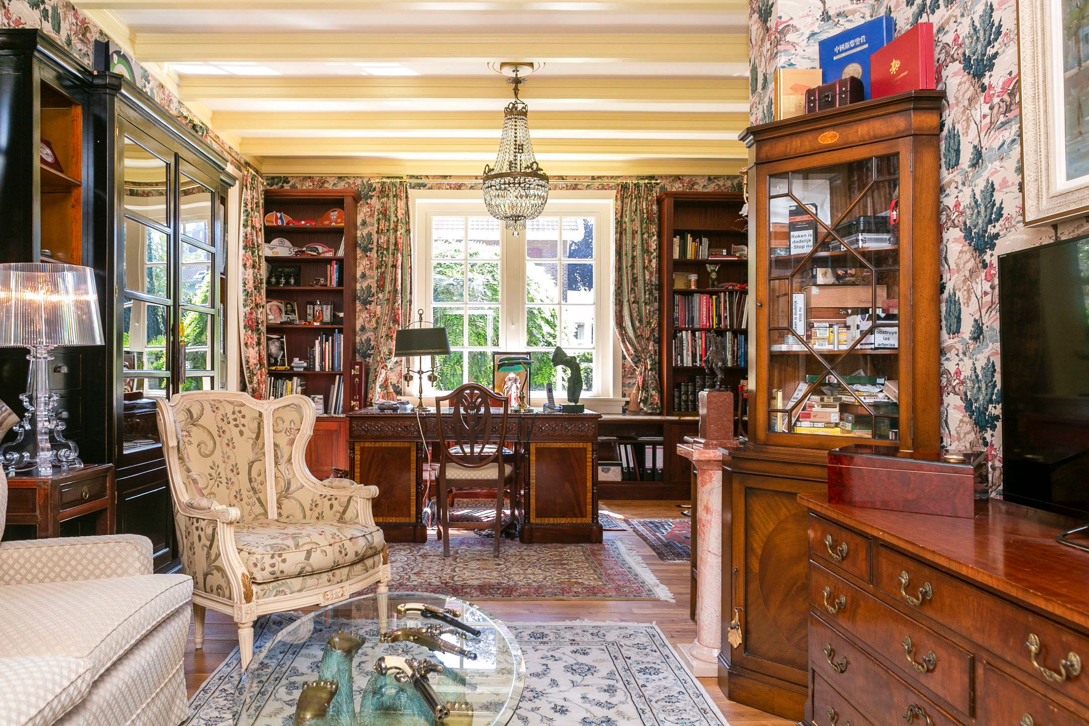 Op loopafstand van NS-station Velp gelegen! Amsterdam-Zuid is vanuit Velp in ruim een uur bereikbaar met de trein. Ideale woning wanneer u in het westen van het land of in de omgeving Nijmegen of Utrecht blijft werken. Op circa 2 km afstand bereikt u de A12 richting Utrecht Duitsland. Diverse internationale vliegvelden binnen 110 km afstand gelegen.. U kunt hier schitterend wonen. Onder architectuur gebouwd in romantische stijl gerenoveerd en uitstekend onderhouden royale vrijstaande villa uit 1926. Met in 2005 gebouwd vrijstaand fraai in dezelfde sfeer uitgevoerd bouwwerk waarvan in ondergebracht een verwarmd zwembad, toilet met fontein, sauna, openslaande deuren naar de schitterend aangelegde achtertuin op het zuidwesten met diverse terrassen, grenzend aan voormalige garage, waarin nu garderobe, elektrische zonneboiler, tuingereedschap, fietsenberging met zolder aanwezig zijn. Dit vrijstaand bouwwerk kan gemakkelijk omgevormd worden tot praktijk aan huis, kantoor, atelier of semi zelfstandige woon- slaapunit voor familielid van 75 m2 (binnenmaat) exclusief alle bergingsruimten van ongeveer 12,5m2 (binnenmaat) plus vliering van 18m2 (binnenmaat). Er zijn 2 buitenkranen, 2 buitenstopcontacten en een elektrische terrasverwarming aanwezig. Het platte dak deel is voorzien van zonnecollectoren. De twee zonneschermen zijn elektrisch bedienbaar. Zeer gunstig gelegen ten opzichte van centrum met diverse winkels en restaurants, 5 minuten lopen naar NS-station, 3 minuten naar de basisschool en slechts 5 minuten fietsen naar het Rhedens Lyceum en het Titus college VMBO. Andere middelbare scholen in Arnhem zijn met de fiets binnen 20 minuten bereikbaar. Zwem, tennis, voetbal en hockeyclubs liggen binnen 10 minuten fietsen van deze woning. Gelegen in een rustige straat. Indeling Begane grond: vestibule, royale hal, garderobe, toilet met fontein, voorkamer met erker en open haard en openslaande deuren naar de zij tuin, eetkamer met erker en openslaande deuren naar de tuin, zeer ruime studeerkamertvkamer, in 1996 uitgebouwde volledig ingerichte woonkeuken en bijkeuken. Zijuitgang naargarage carport. 1e verdieping: overloop, 4 slaapkamers voorzien van airco en waarvan 1 met balkon, 1e badkamer met douche, toilet en wastafel, 2e badkamer aansluitend aan een slaapkamer met douche, ligbad, 2 wastafels, toilet en aansluiting voor wasmachine en droger. 2e verdieping: royale leefruimte met veel bergruimte, aansluiting voor wasmachine en droger, logeerkamer, 3e badkamer met douche, toilet en wastafel. Bijzonderheden: - Volledig voorzien van dubbel glas - Karakteristieke elementen zijn bewaard gebleven - Mooie parketvloeren, stijlvolle tegelvloeren zowel binnen als buiten, balken, plafonds en paneeldeuren - Bijzonder mooie Engelse bloementuin met beregeningsinstallatie, terras en verwarming - Haardhok voor houtopslag - Geheel overdekt en verwarmd zwembad met kleedkamer, sauna, douche en toilet - Berging voor opslag tuingereedschap met werkbank - 2e berging voor fietsen - KIWA gecertificeerde zand gevulde olietank - In 2021 voor meer dan 750.000,- k.k. gerenoveerd - Teruggebracht naar de stijl van de jaren 20 en' 30 van de vorige eeuw - 150 bakelieten, lichtschakelaars en wcds (sommige met UTP) geplaatst - Gietijzeren radiatoren klassiek met Rococo motief, totaal circa 20 kw vermogen - Erkers met convecterende warmte elementen en radiatoromkleding in hout, met bespoke webbing met fleur-de-lis en Spirit of Ecstacy motief. Vensterbanken voorzien van natuursteen, waaronder azul de bahia, verde de guatamala, patagonia, rosso de Valencia,avocado en ros airora. Totaal circa 20 kw vermogen - Nieuw leidingwerk op veel plaatsen - Nieuw zinkwerk daken, goten en dakkapellen - Plafond isolatie, vloer en spouwmuurisolatie - Dakkapellen gesoleerd - 3 ketels boilers - Nieuw dakleer en isolatieschuim op platte daken, keuken en spuwers - Dakpannen gereinigd en gecoat - Koperen schoorsteenkappen met vergulde globus - Zeer stille Mitsubishi airconditioning circa 15 kw, 50.000 BTU - 12 meter lange carport in hout met Belgisch hardstenen voeten, 2 daklichten en inbouwspots. - Circa 40 zonnepanelen met hoogrendement (b.j. 2021, 475 ws) circa 70 kwu totaal p.d. Omvormers: solar edge metmicro optimisers en gropatt. - 5 Zonneboilers - Inpandig zwembad met nieuwste ultra violet filtertechniek, jetstream en sauna - Beregeningsinstallatie in voor- en achtertuin, rondom het huis. Door uw hovenier, uzelf of secondant desgewenst per smartphone te bedienen of te koppelen aan de weersverwachting. - Tuin paviljoen in Bentheimer stijl met harmonica deuren op hard houten plateau en betonnen fundering. - Nieuwe tuininrichting en beplanting deels nieuwe bestrating met oude ijssel handvormklinkers, rode Weserbergrland schiefferplaten en lichtend pad in andes rose Braziliaanse kwartsiet. - Buitenverlichting Aldo Bernardi al Sole en Baretton in messingkoper en Oud Hollandse stijl. - Automatische elektrische toegangspoort met handzenders. - Hand gesmede tuintoegangshekwerken (klaassen) met bloemdecoratie. - 2 openhaarden met natuurstenen mantel nerogold en eikenhout. - Handgemaakte (House of Windsor) massief houten keuken (berken en beuken), hand gestreken met fijn harige kwast, brede gauge. Aanrechtblad in exotische zeldzame kwartsiet daedalos. - Klassieke Engelse gootsteen in Fire Clay (hoge dichtheid, non-chipping). - Quooker Fusion messing kraan met kokend water en gekoeld, bruisend water. - Klassiek 6-pits gasfornuis met oven Heartland. - Diverse moderne inbouwapparatuur waaronder Miele Auto-dos vaatwasser, Miele Steamer combi-magnetron en wijnkoelkast Liebherr. - Schilderwerken in Farrow & Ball kleursysteem. - Skirting o.a. Victoria Green, Eggs & Darts. - Toilet begane grond met belle epoque tegelwerk gedeeltelijk handgeschilderd. - Plafonds geschikt voor kroonluchters. - Klassieke gordijnen o.a. van Etro, Morris met fringe Villandry en luxe embrasses houles. - Luxe klassieke behangsoorten waaronder: Morris Compendium, Thibaut Giselle, Cole & Son