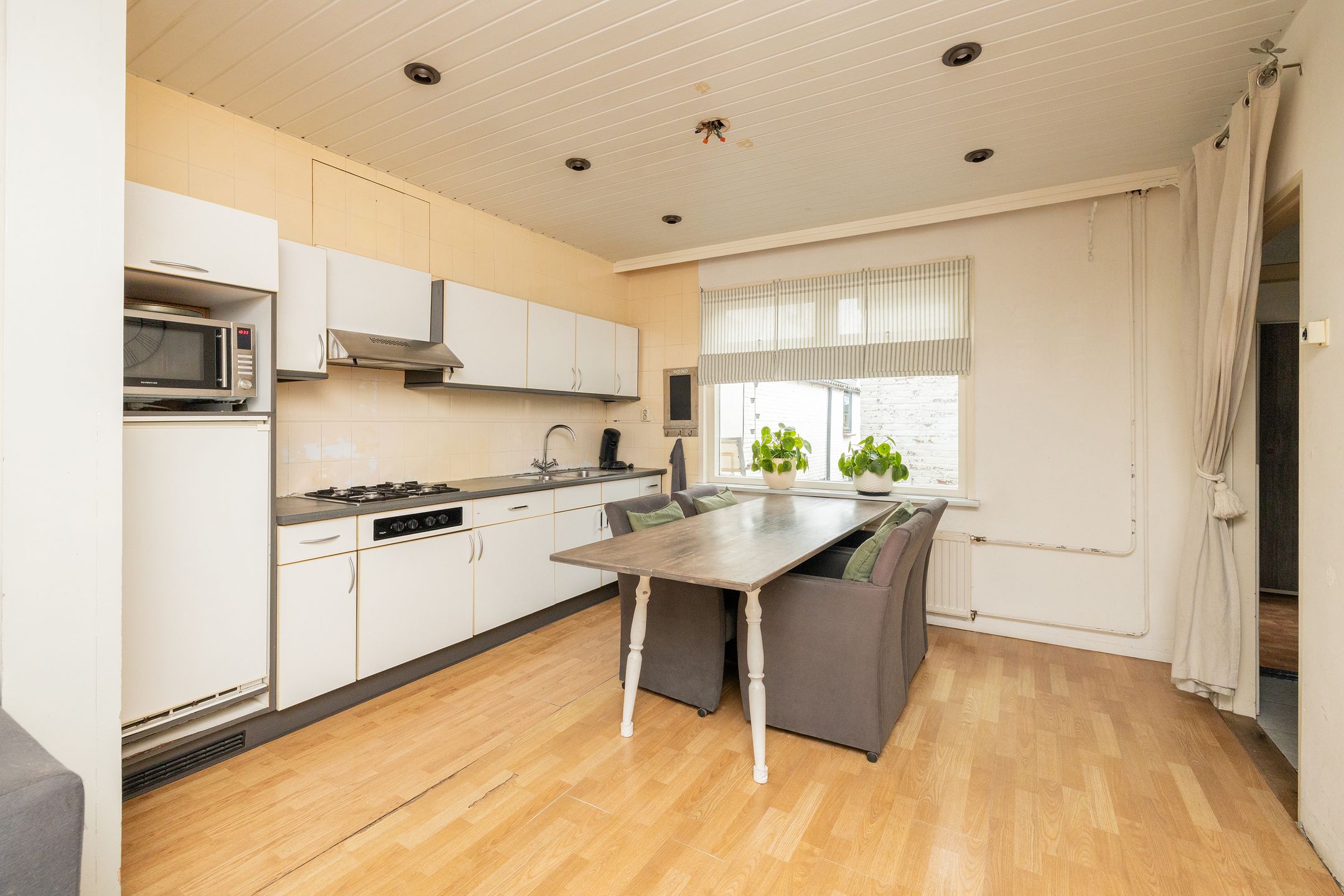 Van harte welkom! Deze charmante tussenwoning, gelegen op een perceel van maar liefst 211 m2, is ideaal voor starters of een klein gezin en ligt op een gunstige locatie aan de doorgaande weg richting Sassenheim en Noordwijkerhout. De duinen, het strand of het gezellige centrum van o.a. Noordwijkerhout is op fietsafstand te bereiken! De woning kan geheel naar eigen wens worden aangepast. Indeling: De woning beschikt over een gezellige woonkamer met grote raampartijen die zorgen voor veel natuurlijk licht en open keuken opstelling. De lichte laminaatvloer geeft de woning een frisse uitstraling. Via de hal met trapopgang bereik je zowel de woonkamer als de verdieping. Begane grond: Entree, hal met vaste trap naar de eerste verdieping, toegang tot de woonkamer. De woonkamer is licht en ruim met een groot raam aan de voorzijde en biedt voldoende plek voor een zit- en eethoek. Aansluitend vind je de keuken (achterzijde), evenals het toilet, een bijkeuken of berging. Daarnaast is er een slaapkamer aanwezig met een aansluiting voor een wasmachine of droger. 1e Verdieping: Via de overloop, met opstelplaats van de cv-installatie, zijn drie slaapkamers en de badkamer bereikbaar. De twee slaapkamers aan de voorzijde van de woning zijn voorzien van groot formaat dakramen, en zijn deels voorzien van dakisolatie. De badkamer is voorzien van twee wastafels, een inloopdouche, designradiator, spiegelkastjes en net tegelwerk. In de badkamer bevindt zich tevens een raam. Tuin: De woning beschikt over een bijzonder diepe achtertuin en is gelegen op het zonnige zuidwesten. Het beschikt over diverse schuren en een overkapping, wat zorgt voor veel opbergruimte en mogelijkheden. Bijzonderheden: * Bouwjaar: ca. 1906; * Woonoppervlakte: ca. 87 m2; * Perceeloppervlakte: 211 m2; * Centrale ligging t.o.v. Voorhout, Sassenheim en Noordwijkerhout; * Openbaar vervoer, het NS station van Voorhout en uitvalswegen (N206) op korte afstand; * Op fietsafstand van de duinen, het strand en recreatieplas het Oosterduinsemeer; * Op de koopovereenkomst zijn de volgende additionele artikelen van toepassing: Ouderdomsclausule, Asbestclausule, Royementskosten en Meetinstructie.