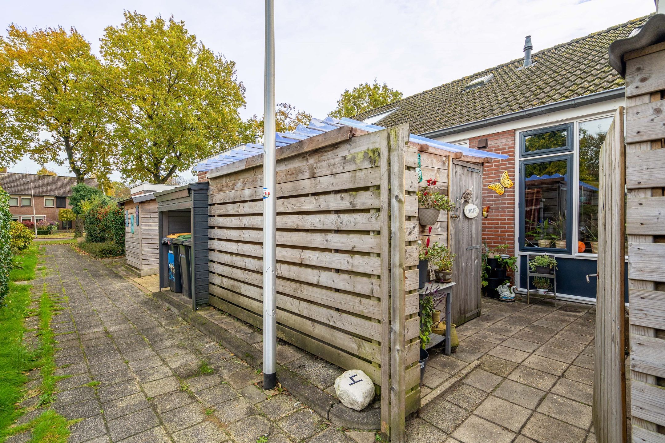 Goed onderhouden en instapklare tussenwoning met alle wooncomfort nabij het centrum van Dwingeloo. Op een fijne locatie -op korte loopafstand van het gezellige dorpscentrum van Dwingeloo- staat deze goed onderhouden tussenwoning op een perceel van 177 m2. De woning is bij uitstek geschikt voor senioren n starters en biedt comfortabel wonen met alle belangrijke voorzieningen op de begane grond. De woning is gemoderniseerd, onder andere de badkamer en vloeren zijn vernieuwd en is de eerste verdieping uitgebreid met twee extra (slaap)kamers. In de vergrote voortuin is een fraai overkapt prieel geplaatst een heerlijke plek om in alle rust van uw tuin te genieten. Uiteraard is er ook een achterom aanwezig. Indeling: Begane grond: Entreehal met trapopgang naar de eerste verdieping, moderne badkamer voorzien van inloopdouche met glazen deur, wastafelmeubel en toilet. De lichte woonkamer beschikt over een open keuken met modern keukenblok en een ruime slaapkamer (ca. 14 m2) met directe toegang tot de badkamer. Aangrenzend bevindt zich de bijkeukenberging. De afwerkvloer van de woonkamer is vernieuwd en voorzien van een keurige laminaatvloer, volledig vlak en drempelloos, dus ideaal voor minder validen. Eerste verdieping: Overloop met twee slaapkamers (beide ca. 7 m2) en een werkkamer (ca. 5 m2). Tuin: Zowel de voor- als achtertuin bieden heerlijke zitplekken. Het overkapte en bloemrijke prieel in de voortuin is een echte blikvanger en perfect voor lange zomeravonden. Achterom aanwezig. Kenmerken: * Bouwjaar: 1970; * Woonoppervlakte: ca. 90 m2; * Inhoud: ca. 181 m; * Verwarming en warm water via CV-combiketel (2013); * 8 zonnepanelen, goed gesoleerd (energielabel B;) * Infraroodsauna aanwezig; * Betonnen vloeren op beide verdiepingen; * Wanden in spouwmetselwerk, houten kozijnen met dubbele beglazing; * Dak voorzien van isolatie en pannen dakbedekking (2015). Bent u op zoek naar een instapklare woning met een comfortabele afwerking en indeling plus een zeer gunstige ligging nabij het centrum van Dwingeloo? Neem dan gerust contact met ons op voor meer informatie of een bezichtiging u bent van harte welkom!