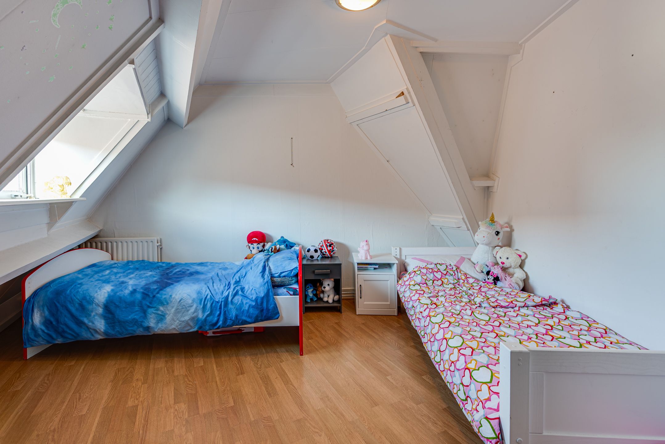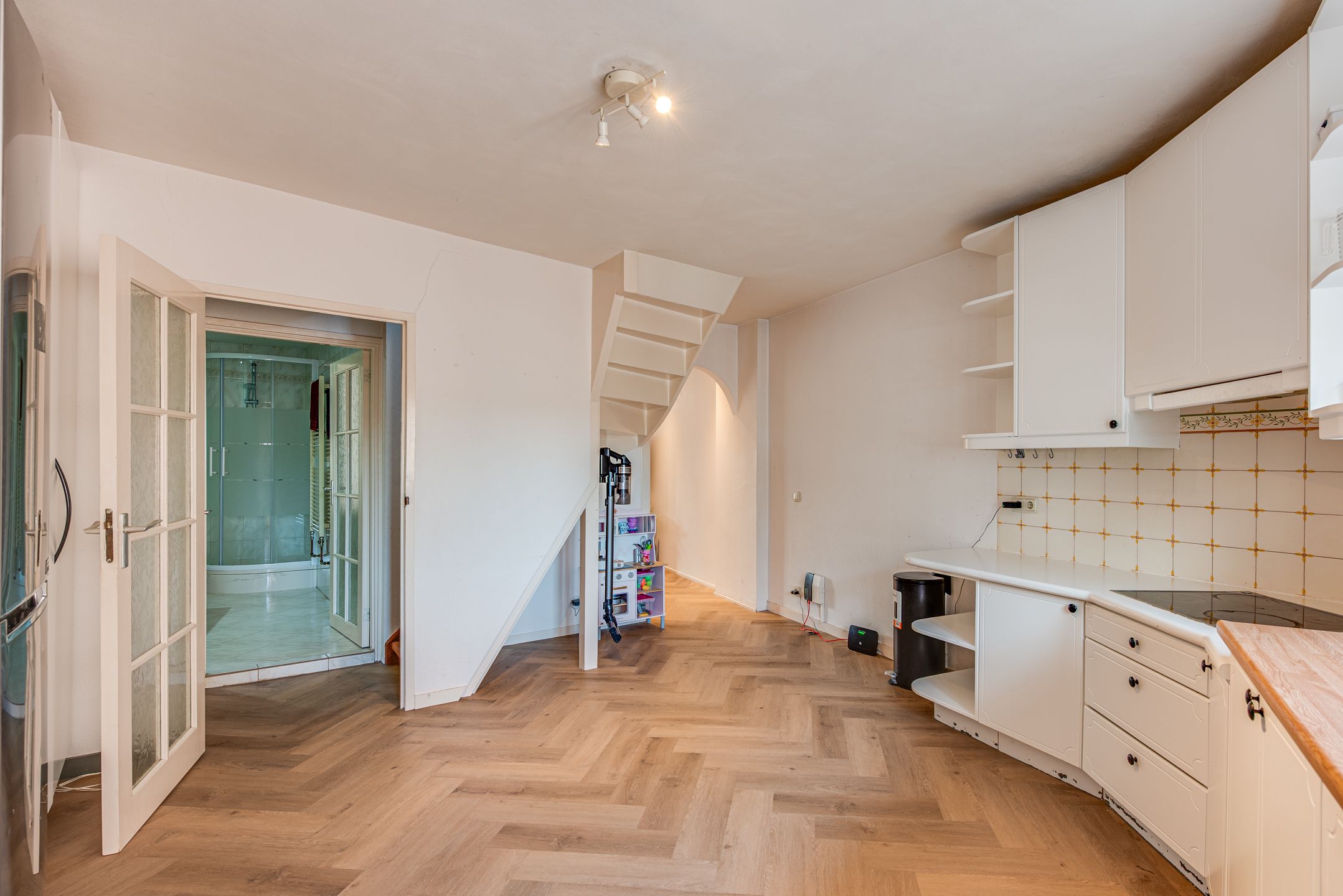 Geweldig centraal wonen, midden in het levendige en gezellige centrum van Baarn! Met leuk uitzicht over de Laanstraat de winkelstraat van Baarn met haar sfeervolle speciaalzaken, supermarkten en horeca, n op loopafstand van het NS-station, ligt deze verrassend ruime hoekmaisonnette van maar liefst 108 m2 met twee zonnige terrassen (circa 20 m2 en 14 m2) op het zuidwesten. De woning bevindt zich op de 1e en 2e woonlaag, is voorzien van dubbel glas, nieuwe (onder) vloer op 1e verdieping (2024) en een nieuwe cv-combiketel (2024). De entree bevindt zich aan de achterzijde van het gebouw. INDELING Begane grond entree Via de achterzijde: hal met plavuizenvloer en vaste kast, hal-berging met wasmachineaansluiting en toegang tot de spiltrap naar de 1e verdieping. 1e verdieping Via de speelse spiltrap bereikt u de verrassend ruime living van ca. 39 m2 een heerlijke, lichte ruimte met de sfeer van een luxe woonhuis. De woonkamer is voorzien van een visgraat PVC-vloer, een fraaie schouw met open haard en strak gestuct plafond met LED-inbouwspots. Openslaande deuren geven toegang tot het eerste grote zonnige dakterras van ca. 20 m2, voorzien van elektrisch zonnescherm, met veel privacy en een fijne ligging op het zuidwesten. De royale woon-eetkeuken is licht, neutraal van kleur en uitgerust met diverse inbouwapparatuur; vanuit hier kijkt u leuk uit over de Laanstraat. Aansluitend een halletje met toilet en een complete, witte badkamer met ligbad, douchecabine, wastafelmeubel en designradiator. 2e verdieping Vaste trap naar de bovenverdieping met overloop. Hier bevinden zich twee ruime slaapkamers: een speelse kamer aan de voorzijde met dakkapel en dakisolatie, en een zeer royale slaapkamer van ca. 19 m2 aan de achterzijde met openslaande deuren naar het tweede zonnige dakterras (ca. 14 m2) eveneens pal op het zuidwesten. BIJZONDERHEDEN Woonoppervlakte: ca. 108 m2 Twee heerlijke dakterrassen met veel zon en privacy Nieuwe cv-combiketel (2024) Dubbel glas en brandwerende vloer 1e etage Servicekosten: ca. 111,- pm Voorschot gaslichtwater: ca. 240,- pm Kortom: de ruimte en sfeer van een compleet woonhuis, met het gemak van wonen in het hart van het centrum en volop buitenruimte om van de zon te genieten. Kom deze verrassende maisonnette zelf ervaren u zult aangenaam verrast zijn!