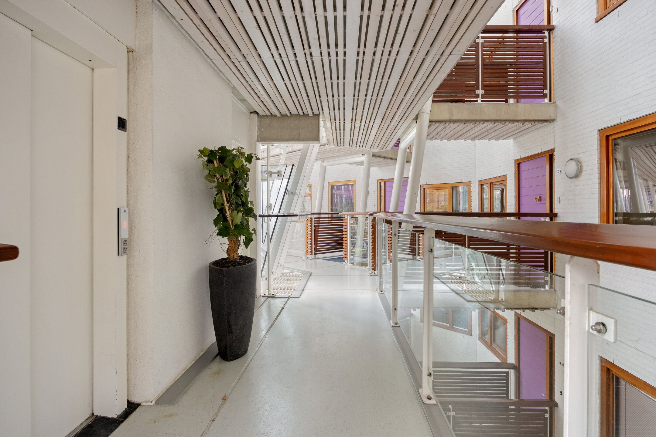 Aan de rand van het water in het Paleiskwartier ligt het moderne appartementencomplex Armada. Dit bijzondere complex bestaat uit tien opvallende gebouwen met gevels die doen denken aan de bolle zeilen van een grote vloot. Armada omvat vijf Longhouses en vijf Tallhouses. Bordeslaan 179, gelegen in Longhouse B3, is een royaal driekamerappartement met een fraai uitzicht over het water en de omgeving. Het appartement bevindt zich op de tweede verdieping en beschikt over een lichte woonkamer met open keuken, een ruim balkon op het zuiden, twee slaapkamers, een wasruimteberging en een nette badkamer. Daarnaast zijn er een eigen berging, een privparkeerplaats in het souterrain, en een eigen wijnkast in de gezamenlijke wijnkelder. De gezamenlijke entree is voorzien van brievenbussen, een bellentableau en een videofooninstallatie. Via de overdekte galerij bereikt u de voordeur van het appartement. De ruime hal geeft toegang tot alle vertrekken. De woonkamer is aangenaam licht door de grote schuifpui, die toegang geeft tot het zonnige balkon. De open keuken is compleet ingericht met een keramische kookplaat, afzuigkap, vaatwasser, combimagnetron, koelkast met vriesvak en voldoende bergruimte. De twee slaapkamers meten respectievelijk circa 4 x 5 meter en 2,40 x 3,20 meter. Vanuit de hal zijn ook de badkamer, het toilet en de wasruimte bereikbaar. De badkamer is voorzien van een wastafel, handdoekradiator en douchecabine. In de technische ruimte bevinden zich de balansventilatie, de warmte-unit en de aansluitingen voor wasmachine en droger. In de kelder bevindt zich op niveau -1 de berging. Op niveau -2 liggen de sfeervolle gezamenlijke wijnkelder met een eigen wijnkast en de privparkeerplaats. Bijzonderheden Fraai uitzicht Zonnig balkon van circa 10,5 m2 Twee slaapkamers Privparkeerplaats en ruime berging Eigen wijnkast in de gezamenlijke wijnkelder De wijk Paleiskwartier is een levendige en centraal gelegen woon- en werkomgeving met diverse voorzieningen op loopafstand, zoals een supermarkt, horeca, fitness, tandarts, fysiotherapeut, huisarts, het Centraal Station en het bourgondische centrum van s-Hertogenbosch. Uitvalswegen richting Waalwijk, Eindhoven en Utrecht zijn goed bereikbaar. Voor wie graag de natuur opzoekt, liggen natuurgebieden als De Gement, het Engelermeer en het Bossche Broek op korte afstand. Dit appartement wordt aangeboden door: Veerhuis Wonen Makelaars D specialist in wonen op het Paleiskwartier Nieuwsgierig naar ons aanbod: volg ons op Instagram voor sneak-previews @veerhuis_wonen_makelaars